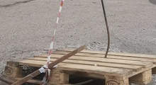 Люк не накрыли даже после того, как в него провалилось колесо машины. Вместо этого опасное место накрыли деревянным сооружением.