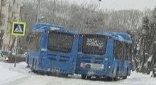 В Новокузнецке водители одного маршрута столкнулись на дороге, полностью заблокировав проезд.