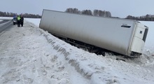 В Топкинском муниципальном округе фура съехала в кювет из-за непогоды.