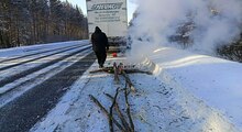 Кузбасские дорожные инспекторы спасли замерзающего водителя большегруза.