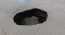 В Кузбассе прямо посередине дороги образовалась жуткая гигантская дыра.